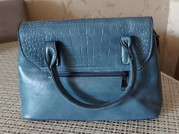 Göy rəngdə, timsah dərisinə bənzər fakturalı, dəbli qadın çantası. Çanta qısa tutacaqlara, əlavə çiyin askısına və bərkidiciyə malikdir. Üzərində rəngli şarf bağlanıb. Bu çanta gündəlik istifadə və xüsusi günlər üçün əla seçimdir.