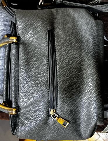 Qadın üçün dəri effektli əl çantası/ruksak - Rəng: tünd boz (kontrast ağ tikişlər) - Forması: sərt korpuslu, düzbucaqlı, üst qapaqlı - Bağlanma: ön qapaqda qızılı rəngli fırlanan kilid, əsas bölmə...