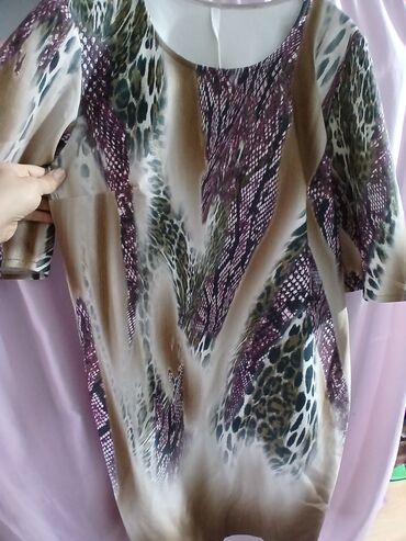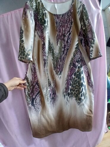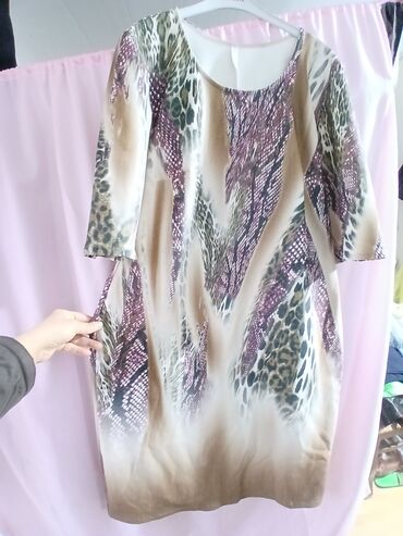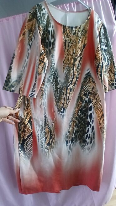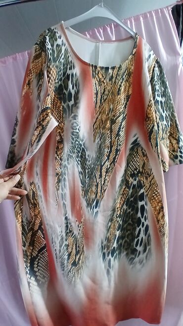 Qadın paltarı – DiMare, model: 13-41769 VESTITO, ölçü: 46 (etiketdə “ORIGINALE 46”). - Dizayn: heyvan printi və etnik-ornamental motivli çoxrəngli naxış; leopar effekti ilə diqqətçəkən mərkəzi si...