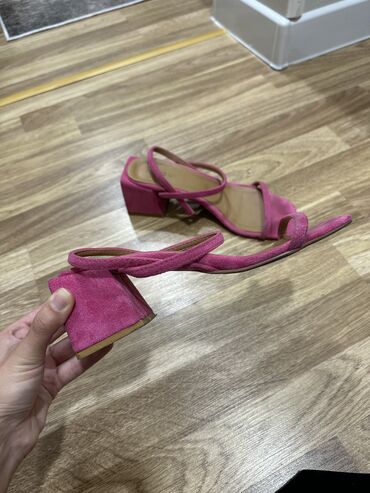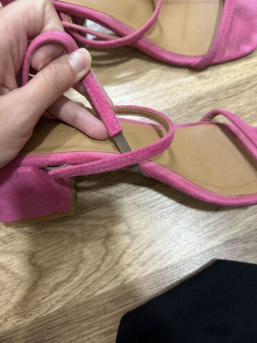 Qadın üçün açıq burunlu sandal İstifadə olunub ama yaralı haldadı. - Rəng: Çəhrayı (qızılgül tonunda) - Model: Aşağı hündürdaban, kəmərli - Daban: Təxminən 3–4 sm, enli və sabit - Üst hissə: Yumuş...