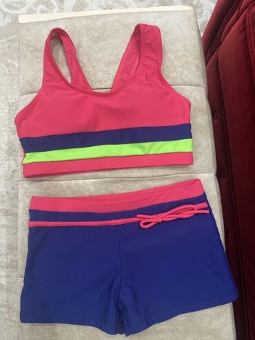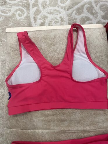 - Üst: Parlaq çəhrayı rəngdə idman tipli bralet. Ön hissədə göy və neon-yaşıl enli zolaqlar. Arxa hissə Y-kəsimli, iç tərəfi ağ astarlı.