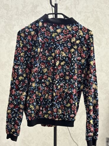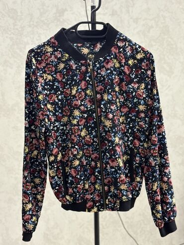 Bershka Collection qadın bomber gödəkçə - Ölçü: M (etiketdə “M 28” göstərilir) - Rəng və naxış: tünd mavi fon üzərində qızılı, mis-tonlu və firuzə çalarlarında floral-baroque print - Dizayn: klass...