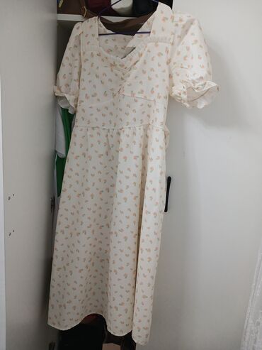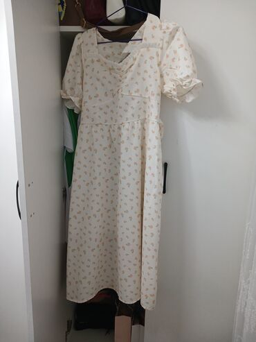 Qadın paltarı – çiçək naxışlı, krem rəngli