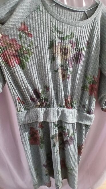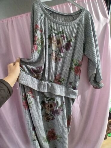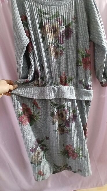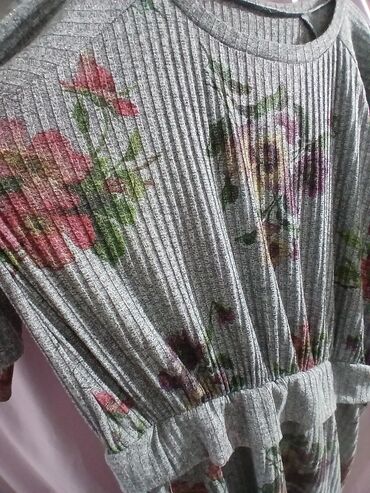 Boz rəngli, çiçək naxışlı trikotaj don - Material: yumşaq, elastik