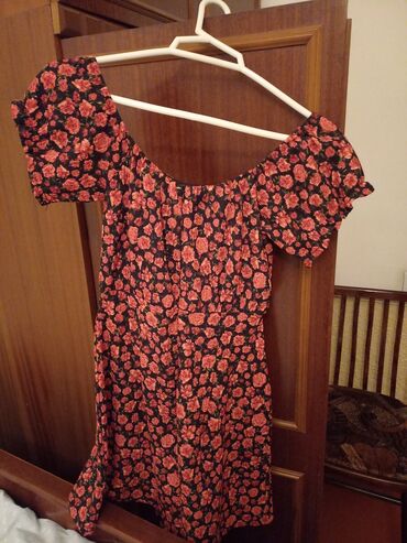 Qadın paltarı – çiçək naxışlı, qısa qollu