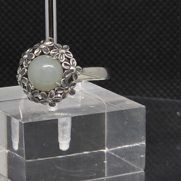 ÜzükBu dəst 925 prob gümüş bir üzük və bir cüt sırğa daxildir. Hər bir elementin mərkəzində Təbii ağ nefrit qaş yerləşir. Daşın ətrafı çiçək formalı gümüş naxışlarla bəzədilmişdir. Bu dəst zərif və klassik görünüşü ilə hər növ geyimə uyğun gəlir. Gündəlik istifadə və ya xüsusi tədbirlər üçün uyğundur.