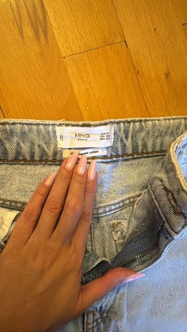 MNG brendinin cins ətəyi - Material: klassik mavi denim - Ölçü: M (EUR/USA M, MEX M) - Mənşə: Turkey - Dizayn: dizə qədər/orta uzunluq, ön hissədə şaquli tikiş və aşağıda yarıq - Bel: kəmər üçün h...