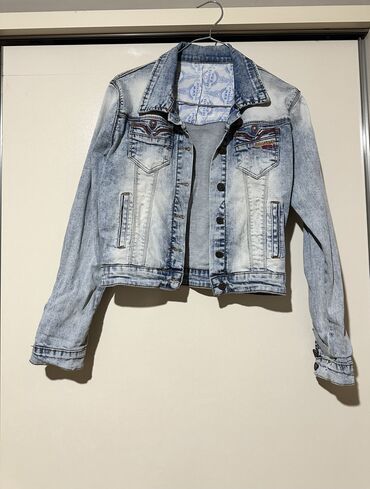 Qadınlar üçün cins gödəkçə - Rəng: açıq yuyulmuş mavi - Kəsim: crop