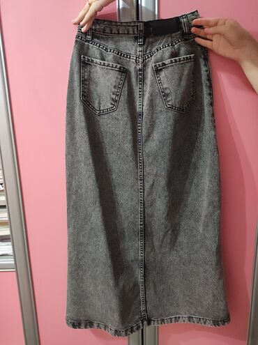 Boz rəngli denim ətək - Material: elastan qatqılı jeans/parça (etiket: JINCAIHIZU) - Rəng: tünd-boz yuyulma effekti ilə - Model: dizə qədər dar kəsim, klassik beş ciblə (2 ön, 1 sikkə cibi, 2 arxa...