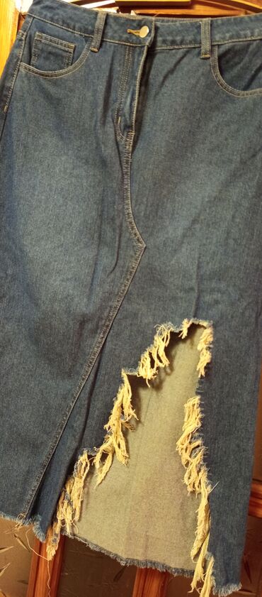 Denim ətək - Material: tünd mavi cins (jeans), yüngül solğun effektli