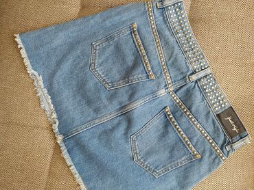 Brend: FEIDING Məhsul: Cins ətək - Açıq mavi yuyulma effekti - Klassik beş ciblə: ön tərəfdə 2 əsas cib + sikkə cibi, arxa tərəfdə böyük yamalı 2 cib - Kəmər halqaları və metal düyməli, fermuarlı ...
