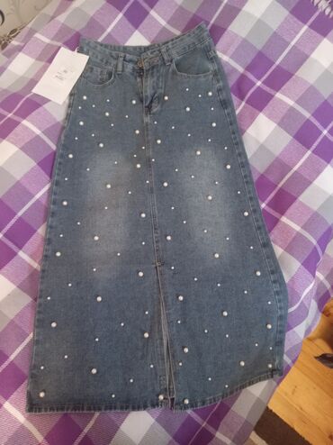 Həm gündəlik, həm də şıq kombinlər üçün uyğundur; tək rəngli köynək və ya köynəklərlə asanlıqla uyğunlaşır. Mirvari naxışları ətəyə zərif görünüş verir, A-kəsim rahat hərəkət imkanı yaradır.