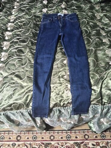 Qadınlar üçün yüksək belli, geniş kəsimli cins şalvar. Olcu 26. -