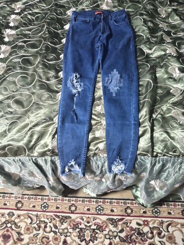 Qadınlar üçün yüksək belli, geniş kəsimli cins şalvar. Olcu 26. - Rəngi: açıq-boz. - Dizayn: hər iki yanda uzun acilib baglana bilen zamok var. - Stil: gündəlik, streetwear və sport-chic kombinlər ...