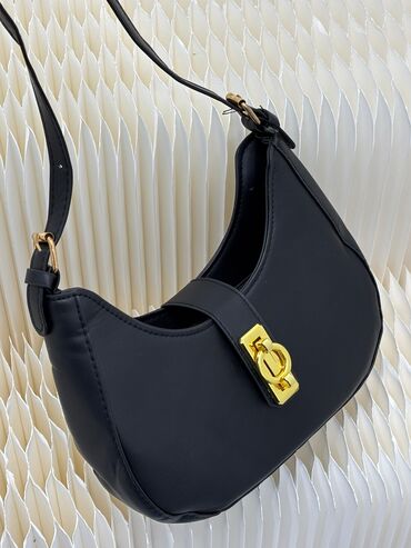 Qara çiyin çantası – minimalist dizaynlı, klassik və zərif. - Forma: yarımay/saddle stilində kompakt ölçü, gündəlik və axşam kombinləri üçün uyğundur. - Material: hamar, parlaq səthli süni dəri gö...