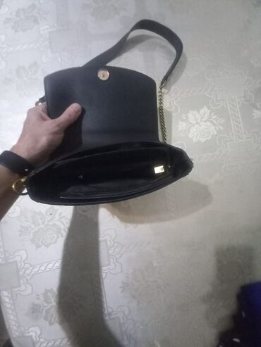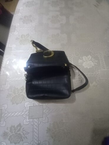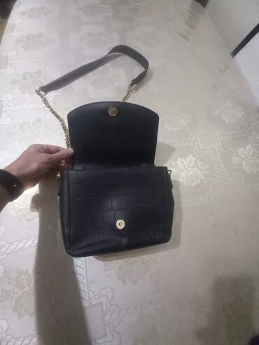 Qara qadın çantası – ilan dərisi fakturalı tebii deri, cox az istifade