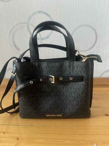 Michael Kors tote çanta - Model: Michael Michael Kors, monoqram “MK” naxışlı xarici dizayn - Rəng: Tünd (qara/daş-boz tonlarında), qızılı detallar - Material: Möhkəm örtüklü xarici material, içlik...