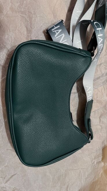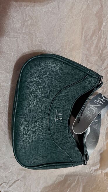 - Kəmər: enli, tənzimlənən parça kəmər, üzərində “ARMANI EXCHANGE/AX” yazıları; metal halqa və tənzimləyici detallarla