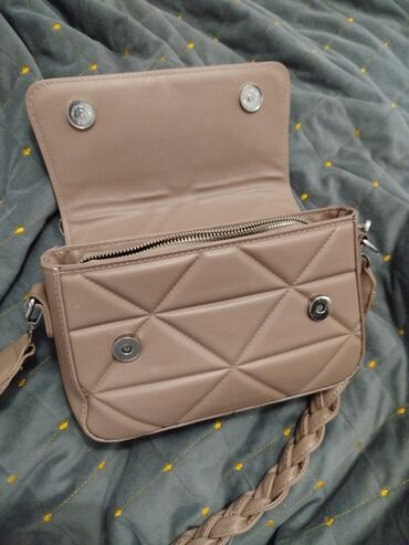 Qadın üçün çiyin/çapraz çanta - Rəng: açıq boz-bej tonlarında - Material: parlaq effektli, tikişli (və zigzaq-kapiton) səth - Forma: düzbucaqlı, sərt konturlu korpus - Bölmələr: üst hissədə ikili ...