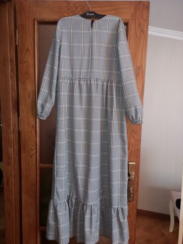 Qadın paltarı – uzun, xətli (dama-dama) naxışlı model