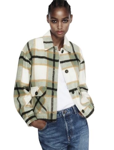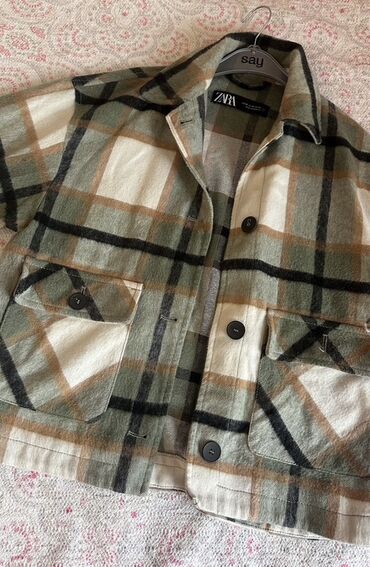 - Model: qısa kəsimli, düyməli üst geyim (shacket stilində)