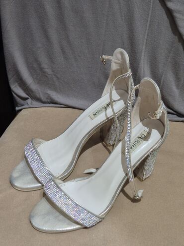 - Dizayn: ön kəmər, ayaqqabı kənarları və daban hissəsi xırda rhinestone/daşlarla tam örtülü, işıqda güclü parıltı verir