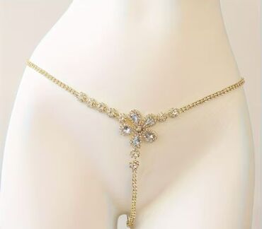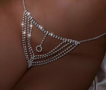 - Kristal daşlardan zəncirli, çoxqatlı parıltılı string bəzəyi – bədən zinəti tərzində.