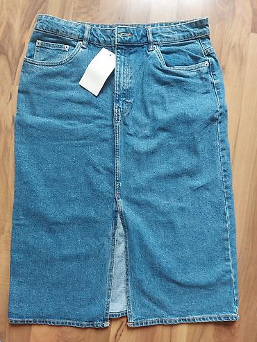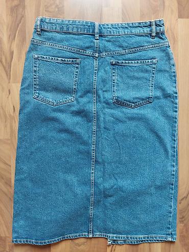 Ölçü və marka etiketdə göstərilib (şəkillərdə görünür). Denim parça mövsümdən asılı olmayaraq istifadə üçün əlverişlidir və formanı yaxşı saxlayır.