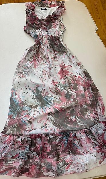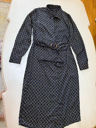 Brend: f.k. pynappel Ölçü: M Ağ əsaslı, uzun boğazlı və uzun ətəkli qadın paltarı. Parlaq qrafik-koloritli naxışlar: qara, xardal-sarı və qəhvəyi çalarlarında iri çiçək və ornament motivləri. ...