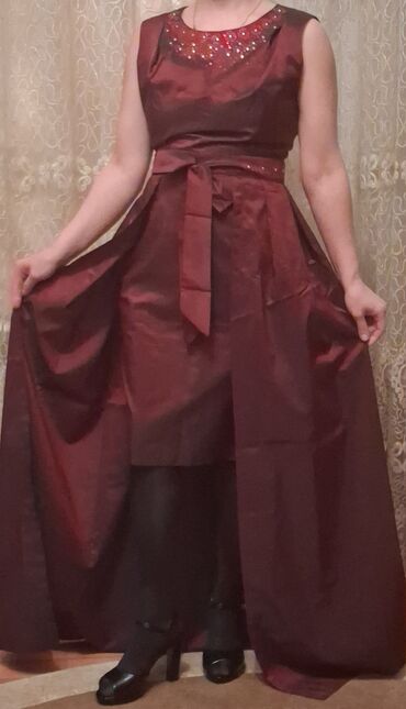 1) Bordo rəngli, mərasim üçün uzun paltar