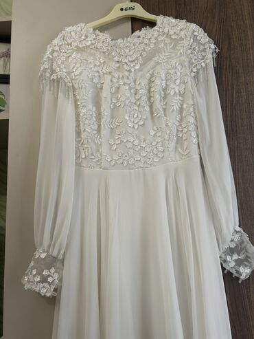 1) Ağ, zərif gəlinlik tərzində uzun paltar: