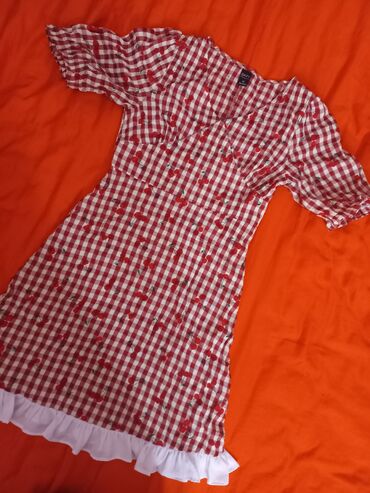 1) Qırmızı-ağ dama naxışlı, albalı printli don