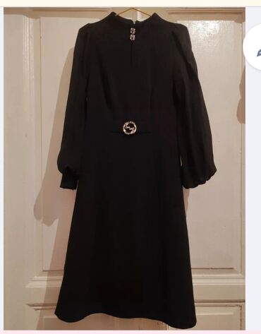 - Model: uzunqollu, yüngül şişkin qol ucları, beldə bəzəkli metal/daş düyməli toka aksenti