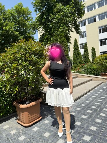 - Qara-ağ mini don: üst hissə bədənə oturan qara parçadan, ətək qismi isə qatlı, həcimli ağ flanel/şifon görünüşlü materialdan. Dairəvi boyun, qolsuz, bel xəttini vurğulayan kəsim. Dizdən yuxarı uzunluq. Şənlik, gündəlik çıxış və yay kombinləri üçün uyğundur.