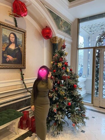 - Zeytun-yaşıl uzun don: uzun qollu, yüksək yaxalı (polo/boru yaxa), büzgülü bel və omba hissəsi ilə fiquranı vurğulayan kəsim. Soyuq mövsüm və zərif gündəlik tərz üçün.