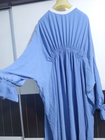 Açıq mavi rəngdə, uzun qollu, rahat biçimli don. Donun boğazı ağ rəngdədir və qollarında büzməli detallar var. Gündəlik istifadə üçün rahat və dəbli seçimdir. Hicablı xanımlar üçün idealdır. İç göstərmir. Sadəcə bir dəfə geyinilib, əla vəziyyətdədir. Metrolara pulsuz çatdırılma var. S-M razmer geyinən xanımlar üçün idealdır.