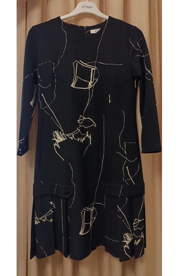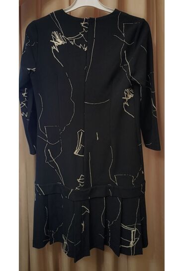 Qara rəngdə, modern abstrakt naxışlı qadın donu.