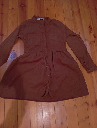 yeni kimidir ( 1 dəfə geyinilib) 200 manata alınıb 90 azn Satılır VERDA qadın paltarı - Rəng: tünd qəhvəyi fon üzərində abstrakt naxış - Yaxa: V-kəsim, bəzəkli zolaqlı detallı açıq arxa-yaxa keçi...