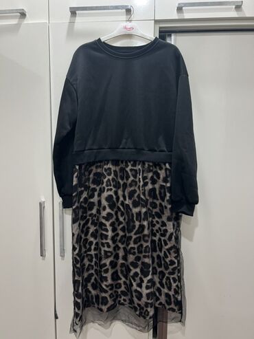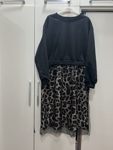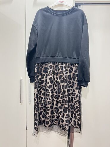 - Alt hissə: leopard naxışlı ətək, şəffaf tul qatla tamamlanmış, dalğalı kənarlar. Diz-altı uzunluq.