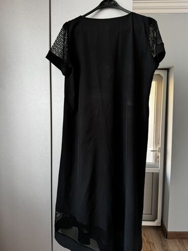 Qara rəngli düz kəsimli xanım donu - Model: sadə və zərif düz siluet - Yaxa: dairəvi (yuvarlaq) - Qol: şəffaf fakturalı şifon uzun qollar, manjetli və yüngül həcmli - Uzunluq: diz boyu (təxmini) -...