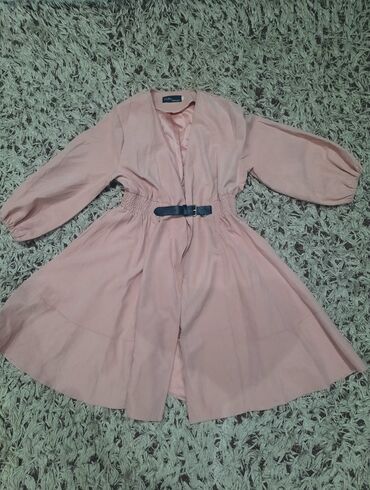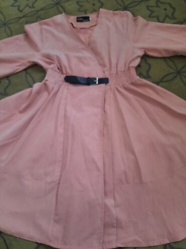 Zərif ziyafət/libas - Rəng: toz-çəhrayı (lilac tonlarında) - Model: uzun, A-kəsimli, yüngül flarlı ətək - Parça: şəffaf tül üst qat, incə romb naxışlı; altlıqla birlikdə - Yaxa: V-kəsim - Qol: 3/4...