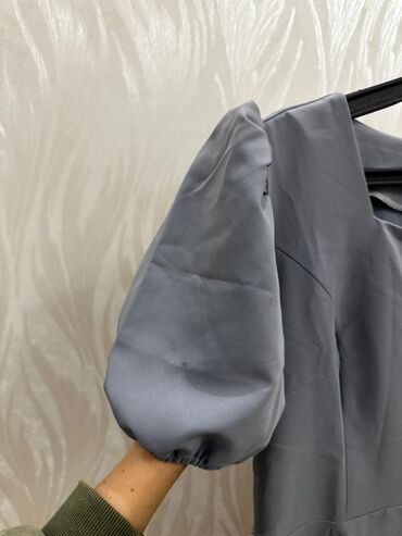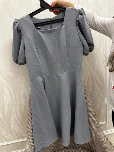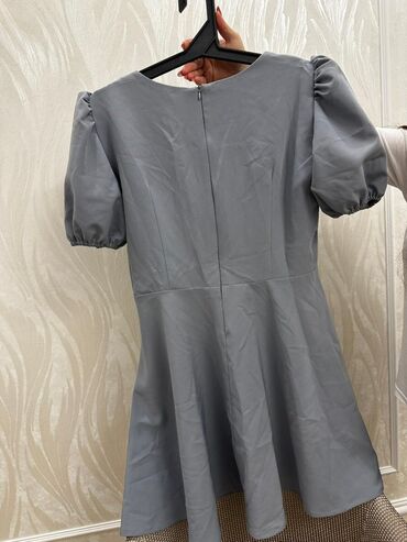 Boz rəngli qadın paltarı - Model: qısa ətəkli, A-kəsim siluet - Yaxa