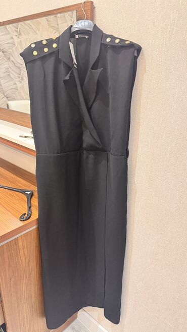 Qara rəngli, dizə qədər uzanan, qolsuz klassik qalıplı don. 45₼ alınıb, təcili satılır. heç geyinilməyib. yenidir. çatdırılma var. İkiqat düymələmə effekti verən ön hissədə 4 ədəd qızılı metal düym...