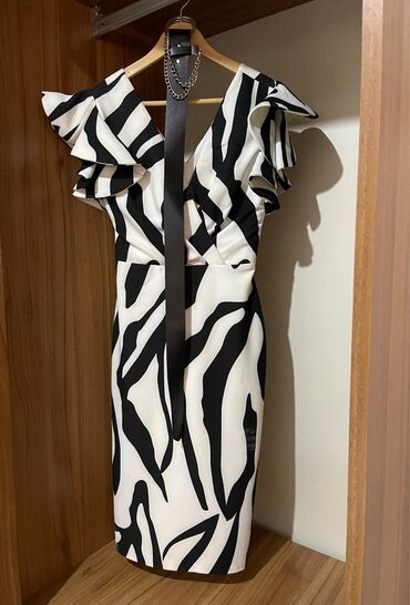 İşlənmişZebra naxışlı, beli kəmərli qadın donu. Ziyafət və xüsusi günlər üçün əla seçimdir. 1-2 saat toya geynilib. Çatdırılma var.