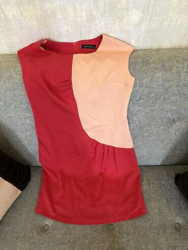 Qeyd: Şəkillərdə əlavə olaraq qırmızı–şaftalı rəng kombinasiyalı digər bir qolsuz, bədənə oturan diz uzunluqlu paltar da görünür; ön hissədə asimmetrik iki rəngli panel, arxada gizli fermuarla. Her ikisi 1defe geyinilib.