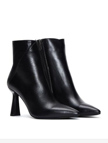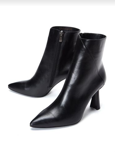 Qadınlar üçün dəbli qısa çəkmələr - Material: yumşaq nubuk , brend Sandro Vicari italiya - Rəng: tünd boz-bənövşəyi ton - Dizayn: ön hissədə geniş laklı dəri qayış və iri metal toka; tokada dekora...