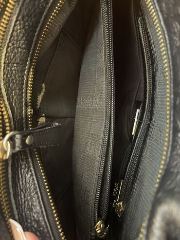 - Material: təbii dəri teksturalı səth, içlikdə loqo naxışlı parça