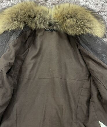 Qadın dərİ gödəkçəsi. - Rəng: tünd qəhvəyi - Material: dəridən (parlaq fakturalı), iç hissədə yumşaq qara süni/xəz astar - Model: dizdən yuxarı uzunluq, düz kəsim - Yaxa: xəz detallı - Bağlanma: ...