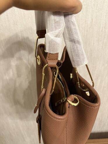 - Metal detallar: qızılı rəng; böyük halqalar və karabinlər