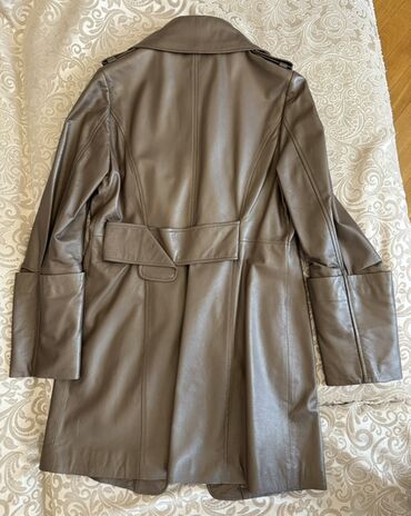 Qadınlar üçün dəri görünümlü trençkot – karam rəngində - Kəsim: klassik ikiqat düyməli trençkot - Material: dəri effektli (parlaq səthli), iç hissədə naxışlı/çəkməli astar - Rəng: isti karam/konya...